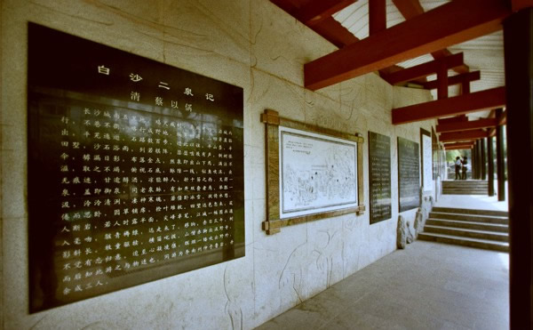 白沙井旁原有亭榭樓臺,曾多次修葺,后毀于兵燹。解放后,白沙井經(jīng)多次修整,井臺鋪花崗石,四周圍以石欄,坡側(cè)植以樹木,南北井中央橫嵌“白沙古井”石碑。