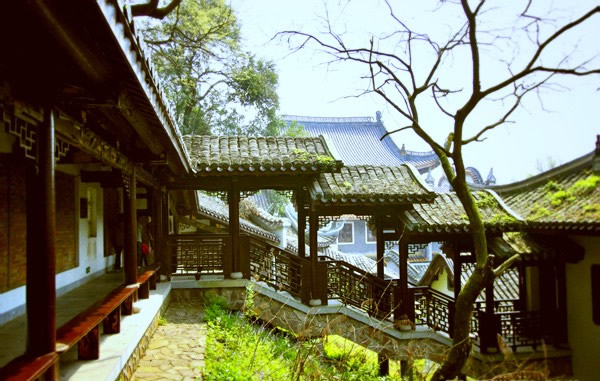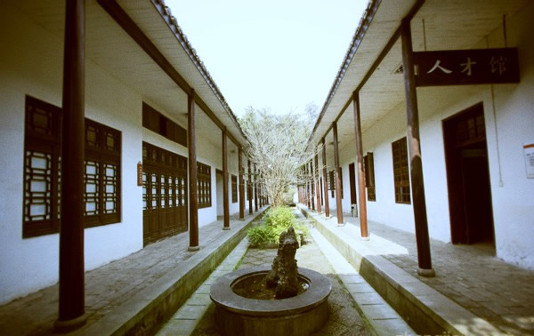 岳麓書院后花園岳麓書院歷史上經歷多次戰火,曾七毀七建,現存主要建筑是清朝遺構。上世紀以來,經過幾次大修,一些毀于戰火的建筑得到了重修。岳麓書院古建筑在布局上采用中軸對稱、縱深多進的院落形式。主體建筑如頭門、大門、二門、講堂、御書樓集中于中軸線上,講堂布置在中軸線的中央。齋舍、祭祀專祠等排列于兩旁。中軸對稱、層層遞進的院落,除了營造一種莊嚴、神妙、幽遠的縱深感和視覺效應之外,還體現了儒家文化尊卑有序、等級有別、主次鮮明的社會倫理關系。