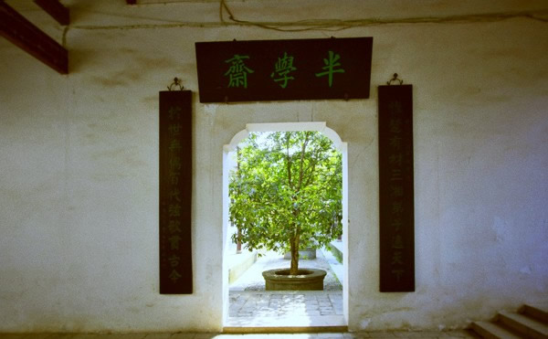 治無古今,育才是急,莫漫觀四海潮流,千秋講院 學有因革,通變為雄,試忖度朱張意氣,毛蔡風神 (懸于大門門廳)