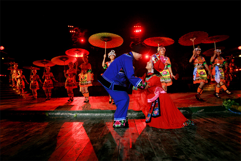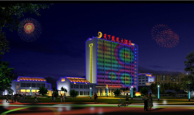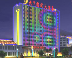 天下鳳凰大酒店是由湖南省知名企業(yè)家陳長松先生投資的一家四星級酒店。酒店距鳳凰縣汽車總站僅200米,距鳳凰古城僅500余米,距銅仁機場34公里、距吉首火車站52公里、距懷化火車站94公里、距張家界210公里,交通便捷。天下鳳凰大酒店依山傍水,悠悠沱江繞酒店而過,酒店環(huán)境優(yōu)美,是中外賓客下榻的理想場所。酒店占地面積7萬平方米,建筑面積3.8萬平方米。酒店依山而建,采用園林式建筑風格,亭臺樓榭、回廓重疊,所有建筑物連成一片,山中有樓、樓中有山,別具一番風味。天下鳳凰大酒店由主樓、附屬樓(A、B、C棟)、貴賓樓、商務樓組成,有各種房型600余套,其中包括天下鳳凰總統(tǒng)套房、貴賓套房、高級房、商務套房、豪華房;客房內設施齊全,使用中央空調、國內長途免費、光纖網(wǎng)絡接入。提供個性化的物品配置,在細微之處充分體現(xiàn)了“以人為本”的生活理念。天下鳳凰大酒店擁有大堂吧、多功能廳、大小會議室、桑拿中心、KTV、棋牌室、美容美發(fā)中心、健身房以及每晚舉行的大型民俗風情“篝火”晚會等活動和設施,力竭為中外賓客提供最完善的服務。天下鳳凰篝火晚會: “天下鳳凰篝火晚會”將用苗家人最隆重的禮節(jié)來歡迎您!您將欣賞到一個古老民族“火”的精神撼天動地;“神”的靈光普渡眾生;“情”的韻味排惻纏綿。您可以身臨其境品味神秘恐怖的湘西趕尸,扣人心弦的苗家絕技上刀山,下火海,還可以親自嬉戲自由戀愛的邊邊場,參與苗家婚禮,猜新娘等特有活動,親愛的朋友們!來吧!觀看這場晚會將是您此生難忘的幸事,走進天下鳳凰篝火堂定會使您感到不虛此行!