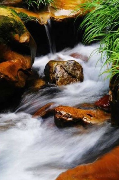 金鞭溪是天然形成的一條美麗的溪流,因金鞭巖而得名。溪水彎彎曲曲自西向東流去,即使久旱,也不會斷流。走近金鞭溪,滿目青翠,連衣服都映成了淡淡的綠色。流水潺潺,伴著聲聲鳥語,走著走著,忽然感到一陣清涼,才覺察有微風習習吹過,陣陣襲來的芬芳使你不由得駐足細細品味。清澈見底、纖塵不染的碧水中,魚兒歡快地游動,紅、綠、白各色卵石在水中閃亮。陽光透過林隙在水面灑落斑駁的影子,給人一種大自然安謐靜美的享受。
