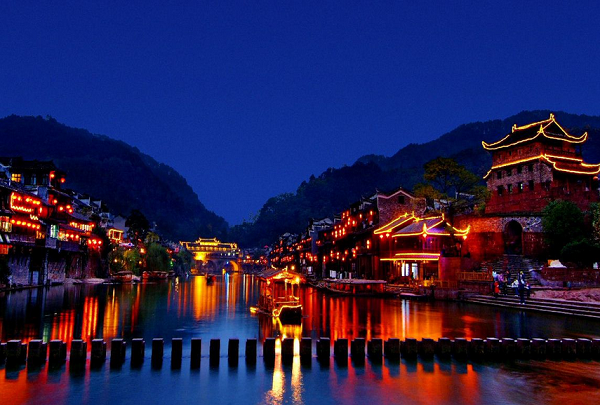 車赴鳳凰古城,晚上可自由漫步古城,感受古城在夜色下的寧靜、淳和,也可欣賞燈光點點下美麗的沱江,參與當地古老的民俗,如放長壽燈,許愿燈等活動...... 當天特色:感受情人峽谷——金鞭溪的浪漫、大自然的鬼斧神工、美麗的鳳凰古城夜景