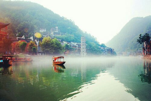 早餐后游覽【鳳凰古城】(未含九景門票):早餐后走過鳳凰歷史悠久歷經滄桑的風雨橋---虹橋。欣賞鳳凰最美的晨景---煙雨鳳凰。登上南華山欣賞鳳凰的全景、體驗沈從文書中的邊城。同時也可以了解到鳳凰的風水寶地--陳斗南將軍宅院,感受明清時期的建筑設施,了解先輩們的文化之精髓.我們感受朱镕基總理的親筆題字,親手觸摸國畫大師黃永玉老先生的精致作品----鳳凰圖騰----酒鬼酒標志.之后我們可以自由活動漫步在明清風格的小石板街,隨著飄來的姜糖味步入那名俗一條街,你會發現苗族人生活方式的特色,滿街的銀飾、湘西的純陽之物朱砂,竹器、葫蘆絲的美妙音樂讓你如癡如醉、在嘗嘗當地特色小吃、讓你一嘗難忘。帶著您的家人--乘坐農家游船沱江泛舟,我們慢慢離開這座山中有水、水中有山、山中有城的這種詩情畫意的小城。讓您真正感受的休閑的鳳凰古城之行.為了您!這座古城已經等待了千年!鳳凰古城風景秀麗,歷史悠久,名勝古跡甚多。城內,古代城樓、明清古院風采依然,古老樸實的沱江靜靜地流淌,觀清澈碧綠的沱江,沿途參觀兩岸已有百年歷史的土家吊腳樓。這里不僅風景優美,且人杰地靈,名賢輩出。除此之外,您可以在閑暇之余,走走沱江的“跳巖”、明清風格的小石板街,再隨著飄來姜糖的方向漫步于民俗一條街,你會發現街邊小店里土家銀飾,西蘭卡普,竹器等工藝品琳瑯滿目,嘗嘗當地的特色小吃,會令你食欲頓生,一嘗難忘,讓您感受真正悠閑的鳳凰古城之行! 當天特色:游覽民族風味濃郁的中國最美的小城——鳳凰古城,品嘗獨特的湘西美食小吃