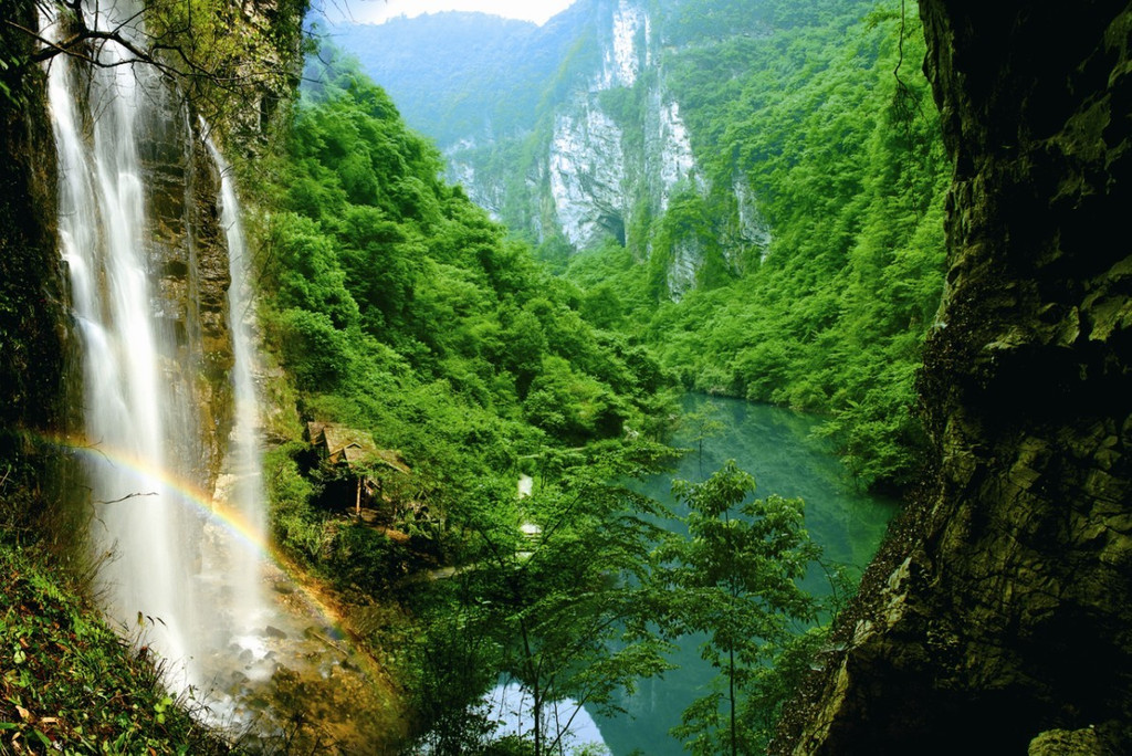 上午:早餐后乘車30分鐘赴有“小九寨”之稱的【張家界大峽谷】游覽(門票118元已含),峽谷中的飛瀑神泉比比皆是,一路游覽下來,讓人目不暇接。可游覽一線天,天梯棧道,全家福,千年古藤,天仙水瀑布,曲徑幽林,闖王亭,南方紅,一路平安橋,竹仙泉,蝴蝶泉瀑布,土匪洞,谷中的飛瀑神泉比比皆是,一路游覽下來,讓人目不暇接。峽谷里植被繁茂,空氣清新,涼爽舒適,溪水上彌漫著一層薄霧,宛如來到世外桃源,讓人煩惱頓消。張家界大峽谷峽谷內不僅有傳統的秀美自然風光;一線天、天仙水瀑布等;除此之外,你還可以游覽世界最長、世界最高的張家界大峽谷玻璃橋---“云天渡”(門票138元已含,需提前報名預約),感受刺激,挑戰自我,橋長430米,寬6米,全部采用99塊透明玻璃鋪設而成。走在300米高空的玻璃橋上,仰望藍天白云,俯瞰溪流潺潺,似漫步云端,超脫塵世,忘卻凡間........