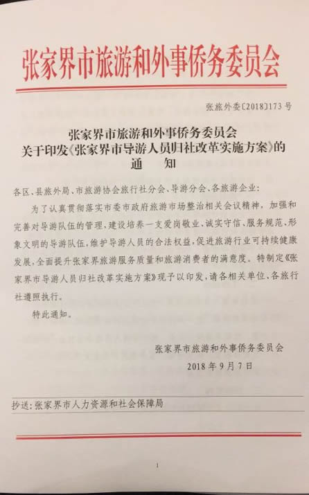 *關于張家界導游限期歸社管理方案的通知