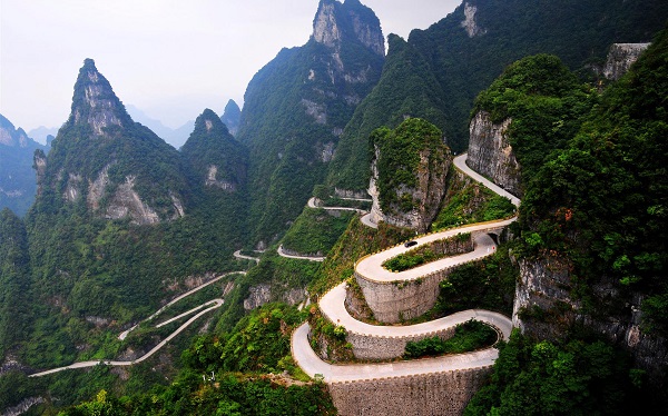 2:通天大道:被稱為通天大道的盤山公路共計99彎,似玉帶環繞,彎彎緊連,層層疊起,依山籍壁,直沖云霄,“天下第一公路奇觀”橫空出世,從索道上觀看公路,有如蜘蛛網一般密集的公路,垂直高差達千米左右。