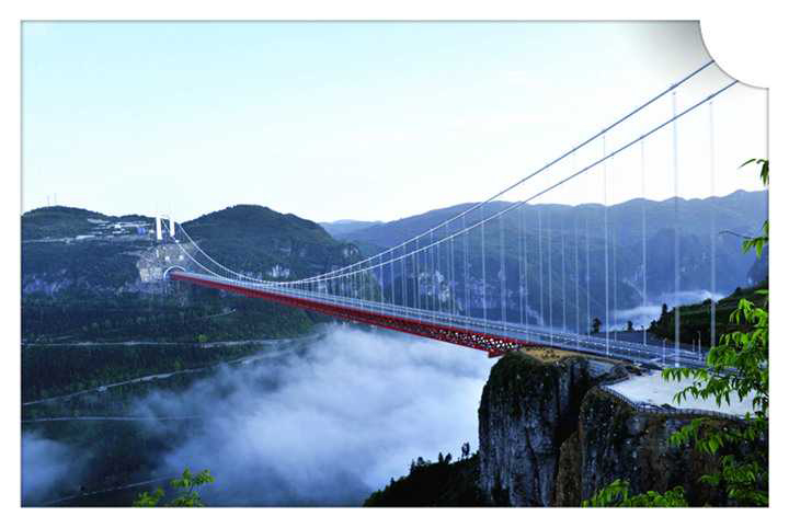 地形險要:橋面到峽谷底高差達355米,兩岸索塔位置距懸崖邊緣僅70至100米。