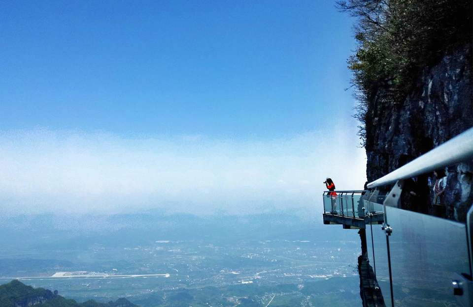 玻璃棧道是張家界天門山景區(qū)繼懸于峭壁之上的鬼谷棧道、憑空伸出的玻璃眺望臺、橫跨峽谷的木質(zhì)吊橋后打造的又一試膽新景點。這條看著就讓人腿軟的玻璃橋給人帶來的刺激震撼感可與舉世聞名的美國大峽谷玻璃走廊“天空之路”媲美。